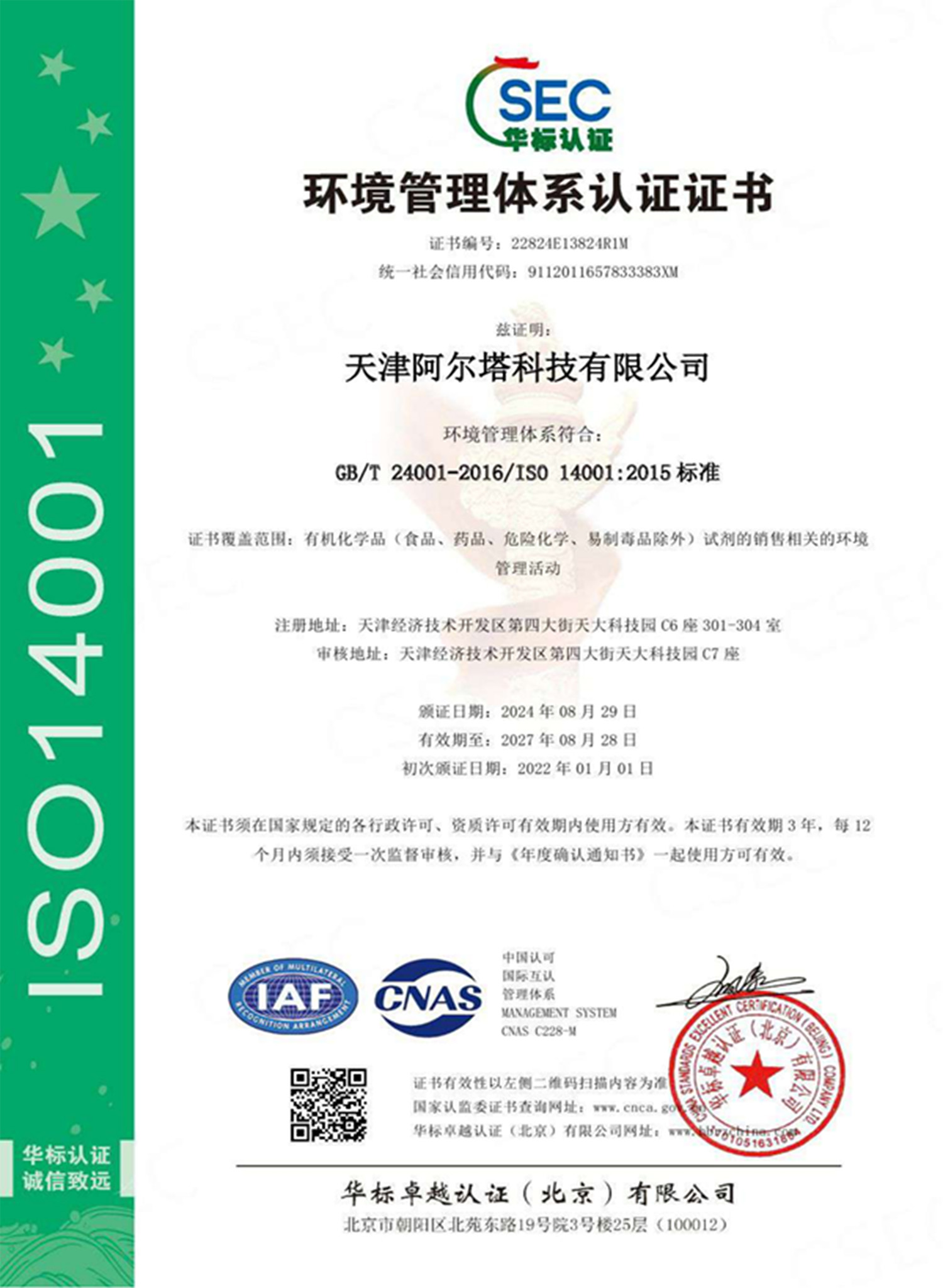 环境管理体系符合:GB/T 24001-2016/1SO 14001:2015 标准